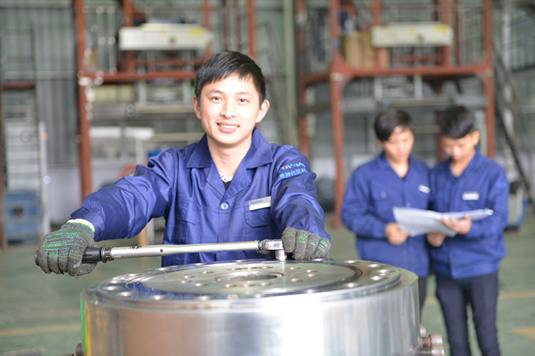 錐形疊加模具:?jiǎn)螌庸矓D吹膜機(jī)生產(chǎn)線采用的是單層錐形模具。我們通過(guò)熱流體學(xué)優(yōu)化布局,并借助3D模擬仿真軟件觀察流體情況。我們確信經(jīng)過(guò)高度的拋光和鍍膜工藝后,經(jīng)奧翔高速螺桿的高壓,高速?zèng)_刷,每個(gè)流道都具有自清潔能力。從而減少粒子更換過(guò)程中的浪費(fèi),減少停機(jī)維護(hù)時(shí)間。